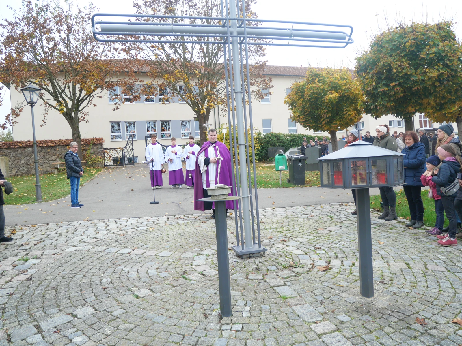 Danach ging der Geistliche mit den Ministranten zuerst zum neuen Friedhofskreuz, das der Kunstschmied Thomas Geißler aus Traitsching entworfen und gebaut hatte. Das alte Holzkreuz war so baufällig geworden, dass eine dringende Erneuerung anstand.