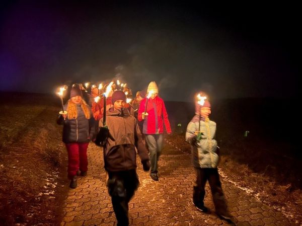 Am Freitag, den 14.02.2025, wanderten die Ministranten mit Fackeln zum Buchberg. Dort warteten heiße Getränke, Snacks und ein wärmendes Feuer auf sie.