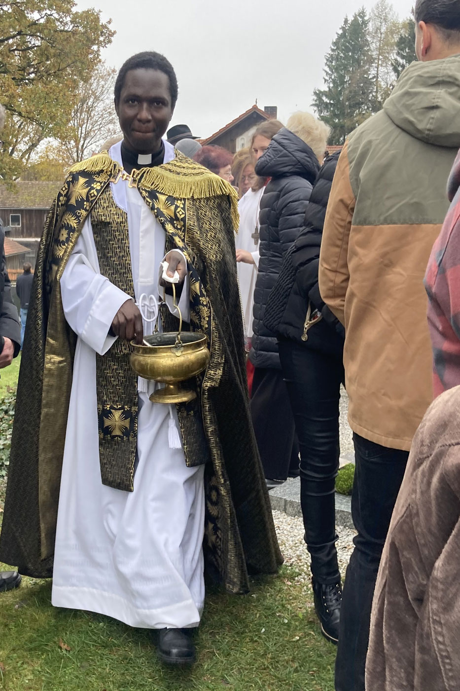 An Allerheiligen gedachte die Gemeinde von St. Nikolaus Ihrer Verstorbenen. Während der Messe hob Pfarrvikar David Lubuulwa die Vergänglichkeit des menschlichen Daseins hervor. Er betonte jedoch, dass Glaube und die Hoffnung auf Erlösung den Hinterbliebenen Trost bringen können. Zudem wurden die Namen der sieben Verstorbenen während der Andacht vorgelesen. Nach dem Gottesdienst begaben sich die Gläubigen zum Friedhof. In den Tagen zuvor hatten die Angehörigen viel Zeit darauf verwendet, die Gräber liebevoll mit frischen Blumen und Blumengestecken zu schmücken. Gemeinsam beteten die Anwesenden für die Toten, in der Gewissheit, dass Gott, der bei der Taufe den ersten Schritt gesetzt hat, sie in den Himmel aufnehmen werde. Abschließend segnete der Geistliche die Gräber mit Weihrauch und Weihwasser.