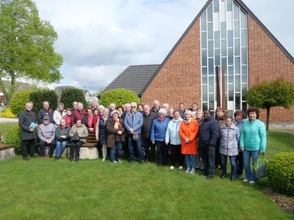 Danach lockte das schöne Wetter die Senioren zum Friedhof und Albertus-Magnus-Garten, der neben dem Pfarrsaal mit Pfarrhaus liegt. Es ist ein Garten für alle Sinne. Das Element „Wasser“ wurde in Form eines Quellsteins in der Mitte der Rasenfläche eingebracht. Die Gartenbänke dienen zum Ausruhen.