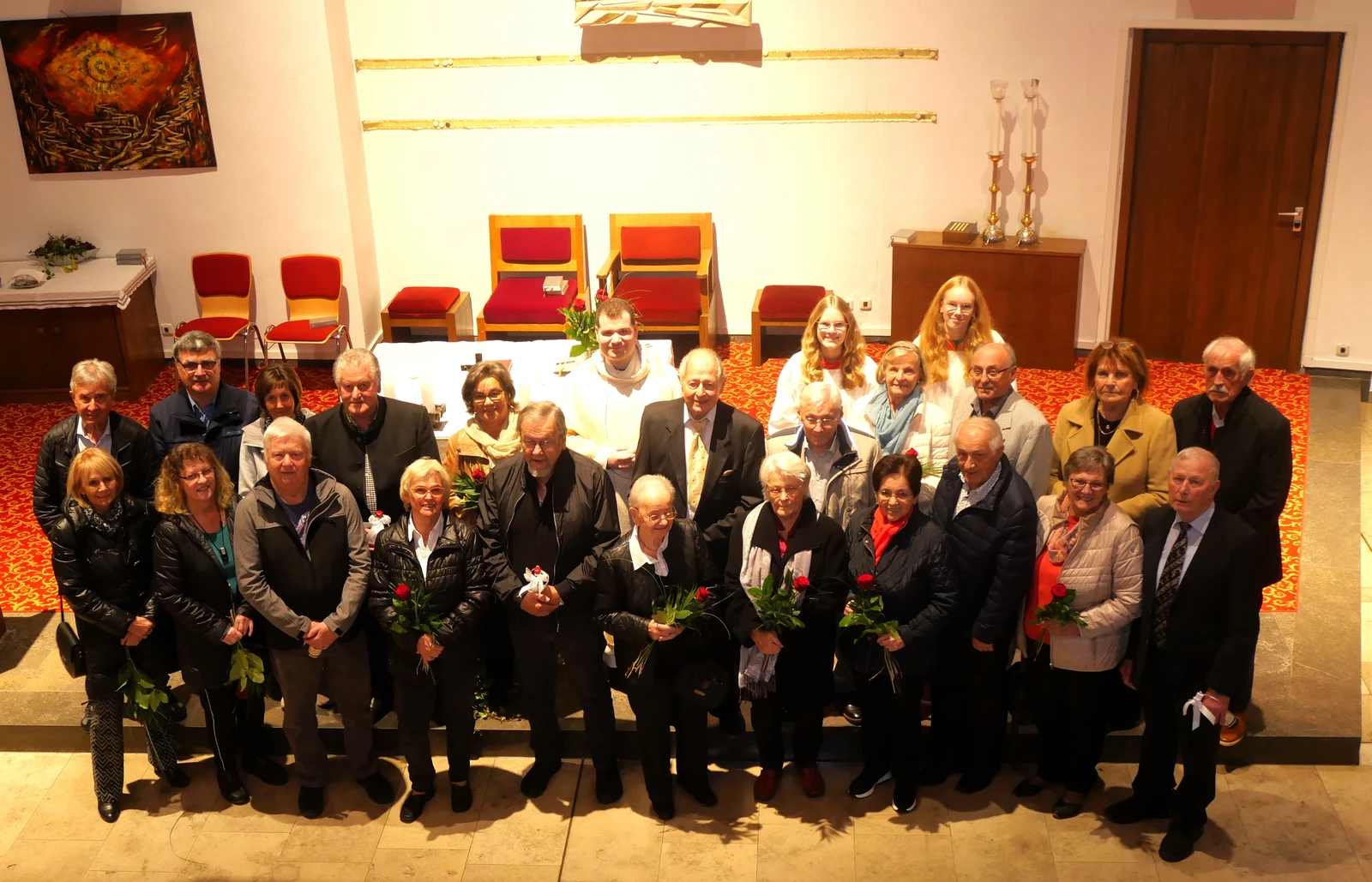 Die Mesnerinnen überreichten als Erinnerung den Ehefrauen eine rote Rose, den Ehemänner einen Picolo.